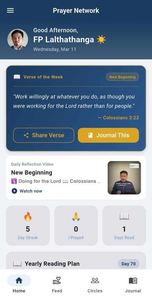 - Verse of the Day — powered by Bible Brain API (1,700+ languages including Mizo)